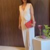 Turn heads with this bold and sophisticated black-and-white ensemble. Featuring a structured black corset-style top layered over a crisp white co-ord set, this outfit perfectly blends power dressing with modern chic. The tailored white blazer-style top and flowy wide-leg pants create a sleek silhouette, while the corset adds a touch of edgy elegance. Styled with statement sunglasses and a chic clutch, this look is perfect for evening events, parties, or high-fashion outings.