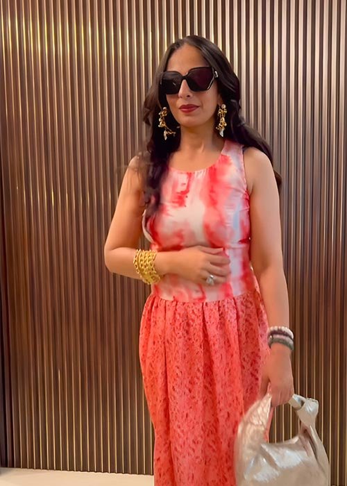 Flattering Cut: Sleeveless round-neck top paired with an A-line maxi skirt to elongate the profile.